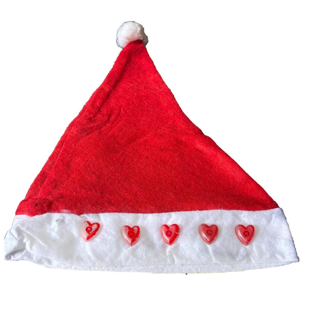 Compra por docena este gorro navideño tipo Santa Claus con luces LED. Ideal para fiestas, eventos, promociones o decoración. ¡Brilla esta Navidad con estilo!