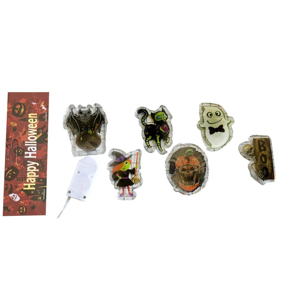 Cada juego contiene figuras clásicas de Halloween como calabazas, fantasmas, murciélagos, brujas y gatos negros, en colores vivos que realzan la ambientación. Puedes distribuirlas en diferentes superficies para lograr una decoración envolvente, o agruparlas como parte de un diseño central para resaltar una ventana o área específica.